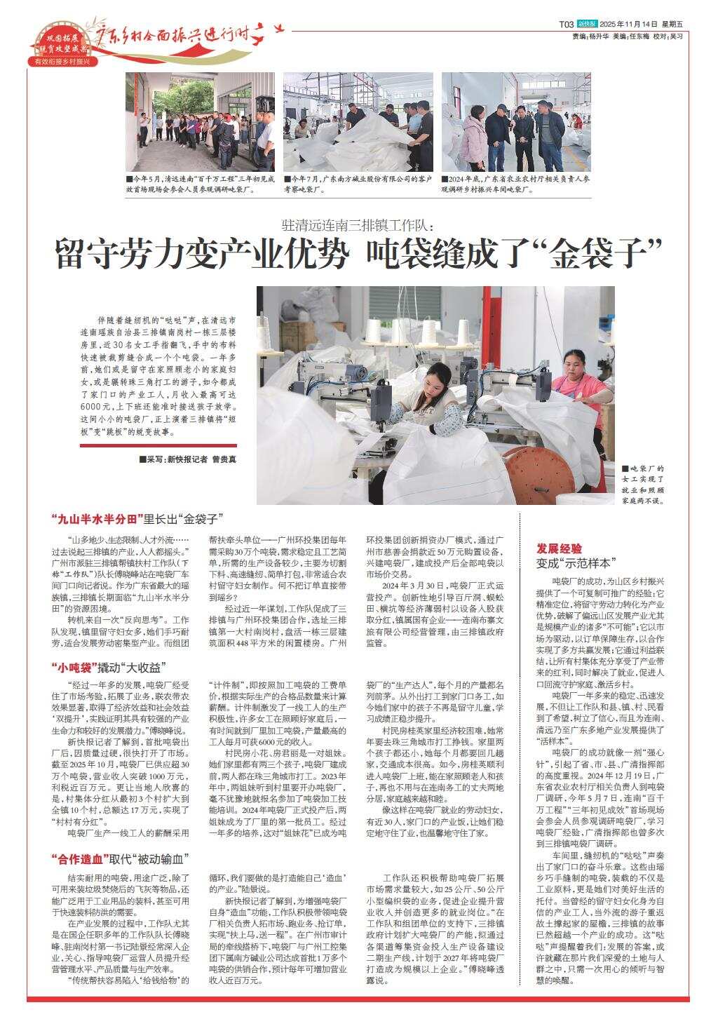 驻清远连南三排镇工作队:留守劳力变产业优势 吨袋缝成了“金袋子”