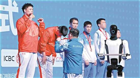 新快报讯 记者王敌深圳报道 11月14日,在全运会拳击项目的颁奖仪式上,一批白色的智能机器人端着奖牌托盘。这是继开幕式表演敲击青铜乐器之后,深圳优必选的Walker S2再次在全运会上亮相。