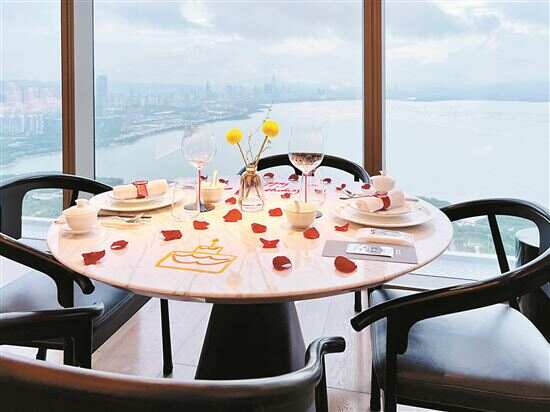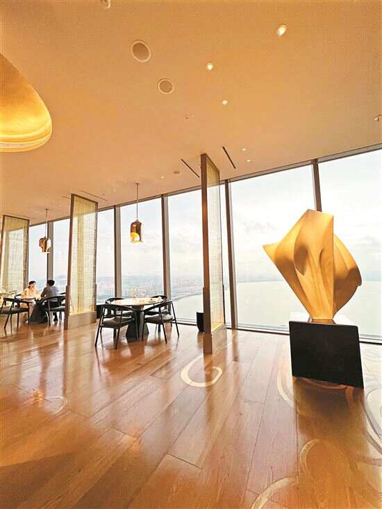 建议您提前一天入住,下午可以先在71层的长廊酒吧喝个悠闲下午茶或下午酒,顺便观赏美丽的深圳湾日落——3面大落地窗环绕的长廊酒吧,每个时刻都有不同的光影美,出片率不要太高。黄铜打造的超长吧台,来自世界各地的酒精饮料令人眼花缭乱,云端特调鸡尾酒值得尝试,有一套四款的套餐可供选择。