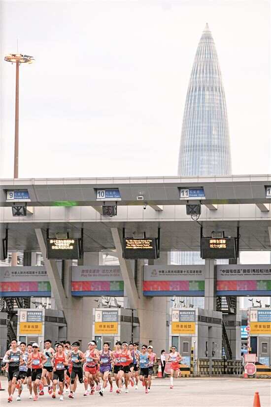 ■全运会历史上首次跨境马拉松赛事15日顺利完赛。赛事由深港两城协同合作,实现了选手、车辆、物资“零延时、零接触、零等待”的无感通关。新快报记者 郭思杰 观显锋/摄