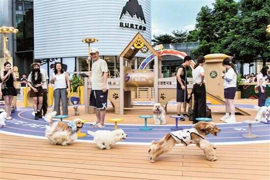 不仅如此,“宠物友好”也从基础服务延伸至社交娱乐场景。今年9月,粤海天地举办了“粤海天地宠物节”,现场变身宠物秀场;10月,汉溪K11携手翘翘公园推出宠物友好主题市集“1+1友好市”,设置宠物障碍赛和干饭比赛等环节;领展广场的“拍爪乐园”及天環Parc Central的“萌宠乐园”则配备了跳圈、隧道、秋千等设施,为宠物打造“专属游乐场”。