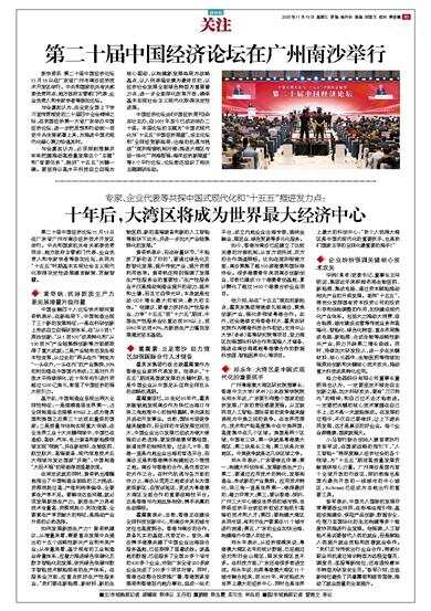 第二十届中国经济论坛11月18日在广东省广州市南沙经济技术开发区举行。中央和国家机关有关部委负责同志、地方政府主管部门代表、企业负责人和专家学者等参加论坛,共同为“十五五”时期基本实现社会主义现代化取得决定性进展建言献策、贡献智慧。