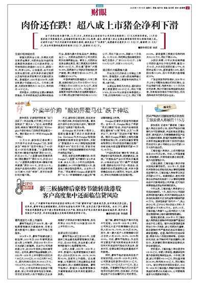 由于光明农牧长期亏损,11月18日,光明肉业公告拟向子公司光明农牧提供1.02亿元的财务资助。10月份国家统计局数据显示,全国猪肉价格同比跌16%,牧原、温氏、新希望三家企业商品猪销售均价同比跌幅均超三成。记者昨日在广州天河某超市肉档摊位看到,猪肉卖出了“白菜价”,纯瘦猪肉优惠价为10.8元/斤,猪排骨18.8元/斤,而去年同期的纯瘦肉价格约18元/斤,肋排约30元/斤。