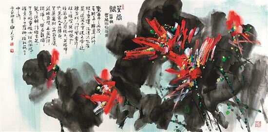 在《风雅潮州》中,许固令的《荷花》以鲜明的红调寄托了对国家富强繁荣、社会和谐和美的赞颂,也承载着海外潮人对故土新生活的向往。荷花寓意“和和美美”,是海外侨胞最喜爱的吉祥意象。许固令说,他从海外回到广州后创作了大量荷花作品,以红色为主调,象征国家的繁荣与社会的和谐。“荷花是可以进入千家万户的题材,它承载着人们对美好生活的向往。”