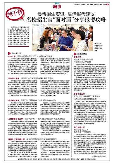 11月23日,广东新快报社主办的“大学力量 领航未来——综合评价高校与港澳高校见面会暨2026广东招生公益说明会”活动在越秀国际会议中心举行。中山大学、华南理工大学等综评招生高校以及香港大学、香港中文大学等知名港澳高校的招生老师在宣讲和接受采访中为考生带来了最新的招生资讯和报考建议,助力考生多元升学。