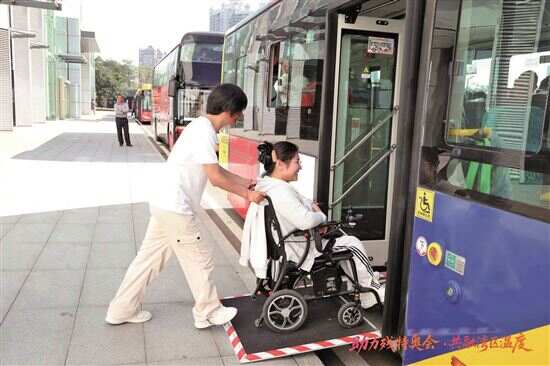 ■参与者体验无障碍公交车。