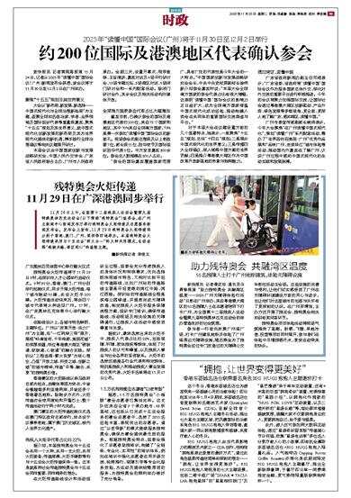 11月24日上午,全国第十二届残疾人运动会暨第九届特殊奥林匹克运动会(以下简称“残特奥会”)组委会,在广州主新闻中心新闻发布厅举行残特奥会火炬传递及志愿服务新闻发布会。发布会上宣布,11月29日残特奥会火炬传递将分别于香港、澳门、广州、深圳等四地举办。本届残特奥会火炬传递采用与十五运会“两火合一”的火种共用模式,生动诠释“残健共融、湾区同心”的温暖主题。