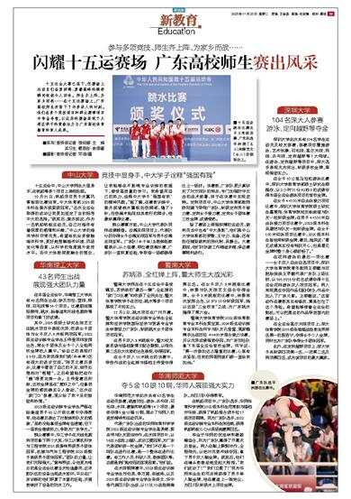 十五运会大幕已落下,但赛场上运动员们奋勇拼搏、勇攀高峰的精彩瞬间依然令人回味。师生齐上阵、为家乡而战……在十五运赛场上,广东高校师生亦留下了许多动人的时刻。他们在多个竞技项目和群众赛事项目中争金夺银,以优异的赛场展现了大湾区学子的青春活力与广东高校体育教育的育人成果。