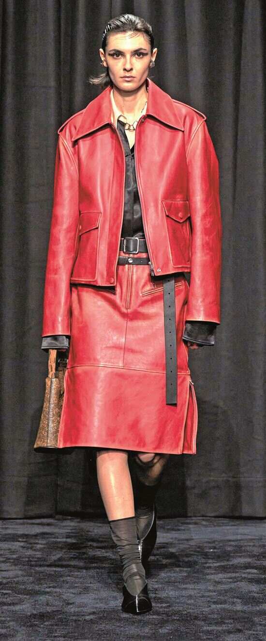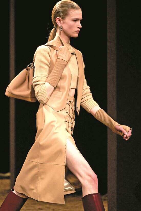 皮革作为时尚圈经久不衰的秋冬主题元素,每年都会被设计师翻新出奇。2025秋冬四大时装周上,皮革通过材质创新、色彩搭配和混搭设计展现出更多元风格,从硬朗到柔美均有体现。经典单品皮外套从往季超大廓型向经典修身版型转身;皮裙越来越丰富的色彩及“剪一刀”的细节令原本硬朗的单品益发灵动;皮革配饰渗透进不同风格造型成为小体量但却不能忽视的点睛之笔……