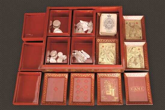 从大体量的屏风,到中型的橱柜、女红桌,到各式小型盒子等,漆器几乎占据了生活的方方面面,如果细心看会发现,从外销漆器的形制来看,几乎都有别于中国传统的漆器,难道这就是“来样定制”或因应西方审美习惯而设计?对于此疑问,白芳答疑称,“外销漆木家具的外形式样是按照西方来样,进行加工定制的,式样主要有各式的盒(如茶叶盒、游戏盒、针线盒)、桌(如缝纫桌、游戏桌、棋牌桌、茶桌)、台(如写字台、梳妆台)、柜(如梳妆橱柜、衣柜)、椅、箱等,外销漆木家具多以黑漆描金工艺进行髹饰。”