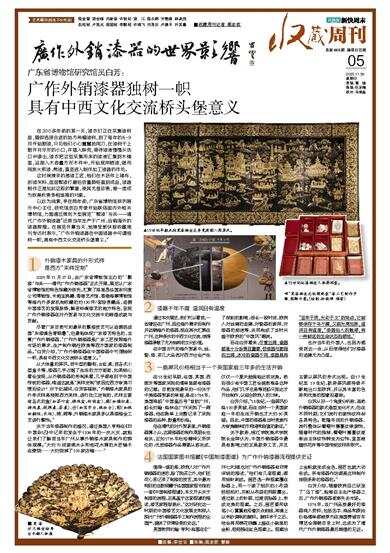 以此为线索,早在两年前,广东省博物馆陈列展示中心主任、研究馆员白芳便开始联络国内外相关博物馆,力图通过策划大型展览“‘髹漆’与共——清代广作外销漆器”还原当年生产于广州、远销海外的漆器辉煌。在展览开幕当天,她接受新快报收藏周刊专访时表示,“广作外销漆器在中国漆器中可谓独树一帜,具有中西文化交流桥头堡意义。”