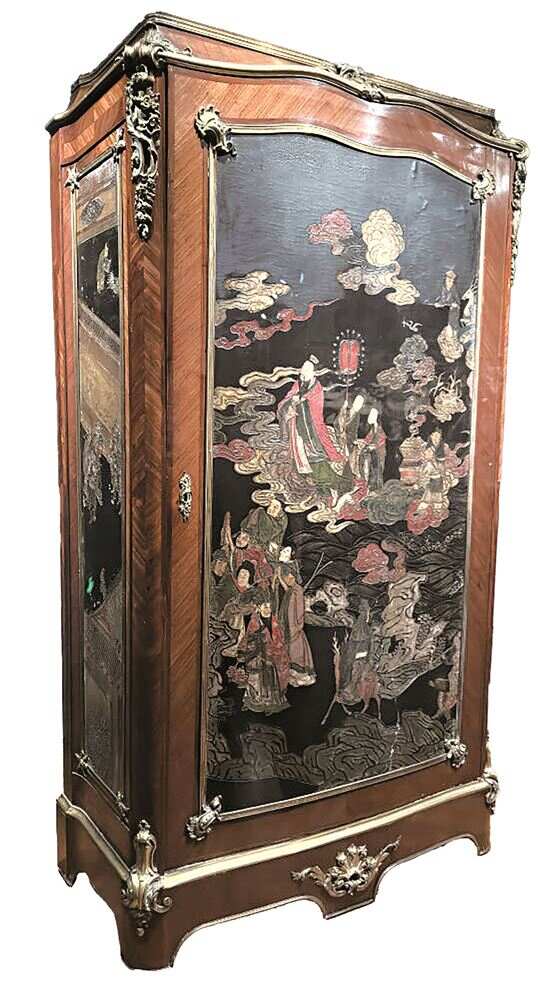 路易十五时期,中国漆屏与漆板,以鲜明色彩与生动构图契合洛可可风格,广受欢迎。这时候的五斗柜或其他家具的正面镶嵌了18世纪初的中国漆板,饰有各种植物缠绕的图案,特别是牡丹,鸟儿在其间飞舞。