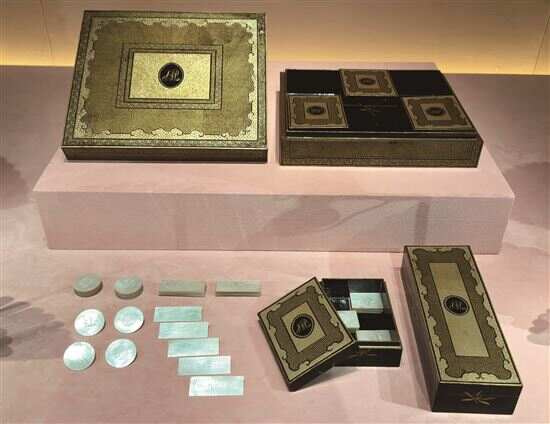 黑漆描金花卉纹章纹筹码盒 18世纪末19世纪初,广东省博物馆藏。