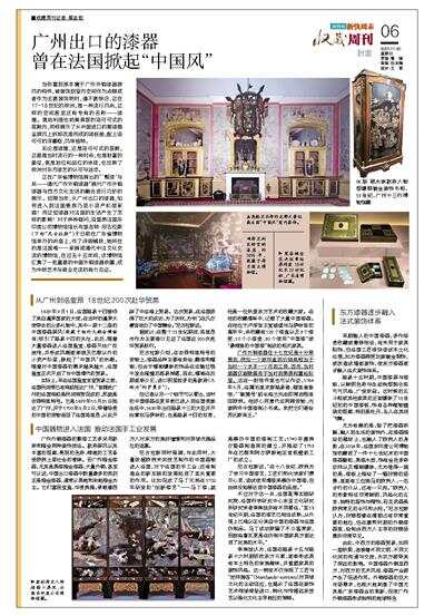 1689年9月1日,法国路易十四接待了来自暹罗国家的大使,在当时的暹罗大使带去的众多礼物中,其中一架十二扇的中国漆器屏风(现藏于纽约大都会博物馆)吸引了路易十四的关注,此后,随着大量漆器进入法国皇室,漆器开始广泛流传,并形成风潮逐渐波及巴黎以外的小资产阶层,掀起了“中国风”的热潮。随着对中国漆器的需求越来越大,法国皇室正式开启了与中国清代的贸易。
