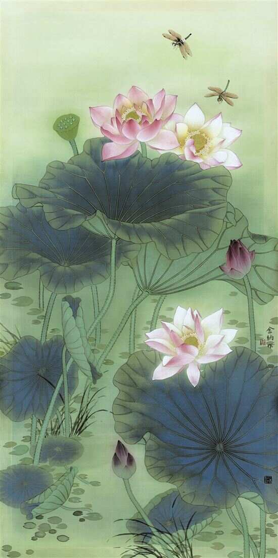 ■清华美院-金纳《芙蕖出绿波》140x70cm