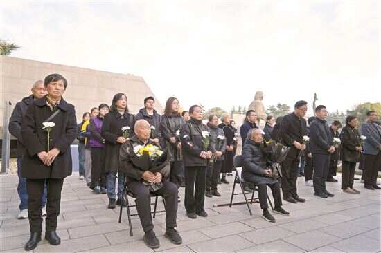 一大早,幸存者夏淑琴、刘民生带着家人,赶到侵华日军南京大屠杀遇难同胞纪念馆的“哭墙”前,鞠躬、献花、默哀,祭奠在88年前遇难的亲人和同胞。