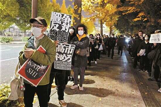 ■11月21日,在日本东京的首相官邸外,民众参加抗议活动。新华社发