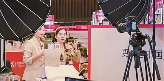 第三届广州国际美妆周上,参展品牌在现场直播带货。