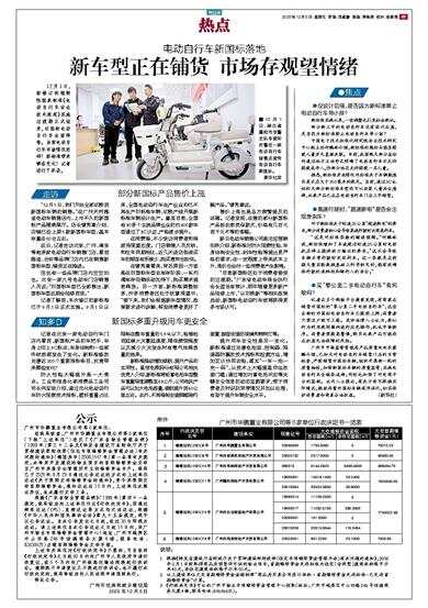 “目前新国标还处于消费者接受的过渡期。”广东省电动车商会执行会长蓝世有预计,明年随着更多新产品陆续上市,“以旧换新”等相关政策启动,新国标电动自行车或将获得更多市场认可。