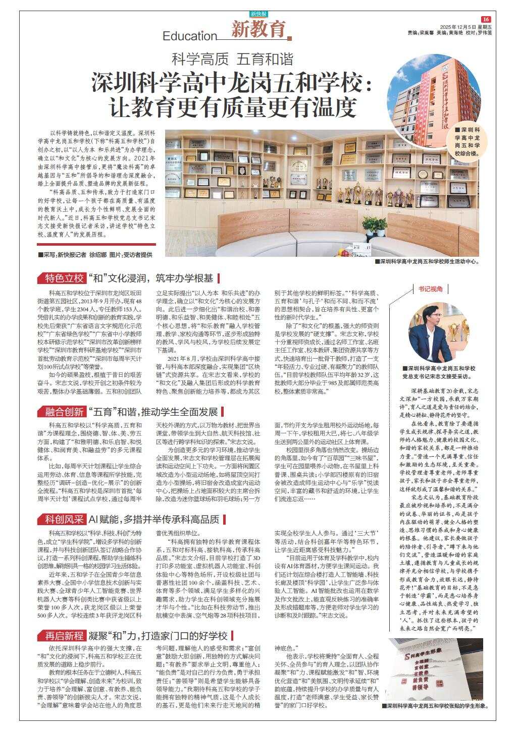 深圳科学高中龙岗五和学校:让教育更有质量更有温度