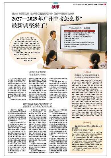 《方案》适用对象为2027—2029年广州市初中应届毕业生和报考广州市高中阶段学校的返穗生、往届生,目前正在读初二学子将是《方案》影响的首届学生。
