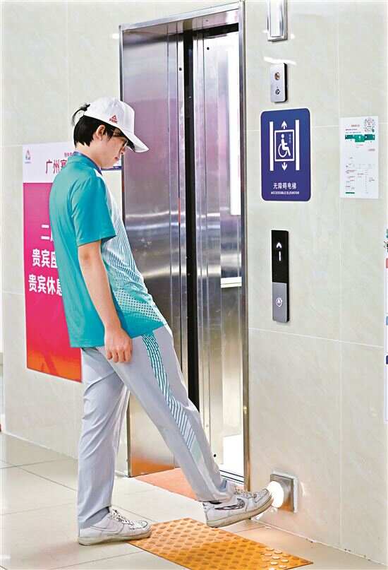 陈祺介绍,无障碍设施建设完毕后,在测试赛前竞委会邀请了广东省、广州市残联的专家和残特奥会乒乓球比赛技术代表前来,对包括赛场、音响灯光的全部无障碍设施设备进行了全方位的检测。在得到他们的一致认可之后,才开始进行一系列的测试赛和比赛。陈祺告诉新快报记者,场馆内外有不少暖心小细节,例如在电梯口增设可以用脚控制电梯开门的按键,电梯内增设了高度更低的按键,这两项都是为了方便肢体残疾人士使用。在入场时,还有机器狗为有需要的视障运动员导航,体现了科技助残的温度。
