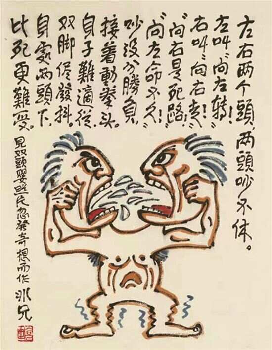 ■廖冰兄,题《双首人》,1991年