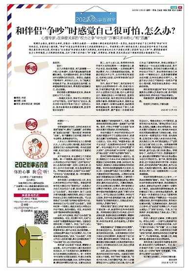 眼睛失去焦点,面部失去神采,好像对一切都失去感受……本期给心事咨询室来信的是一名男生,他在信中讲述了自己和伴侣“争吵”时可怕的状态,自觉存在心理问题,“争吵”时甚至会很想伤害自己来找到情绪的出口。华南师范大学心晴热线负责人袁杰在回信中肯定了他对感情认真负责任的态度,同时指出“白头偕老”的亲密关系属于无限游戏,而来信者此时正处于亲密关系第二阶段的“权力之争”中,需要提前调节权力之争的强度,以无限游戏的思维,允许“万事只求半称心”和“双赢”,用博弈论、用智慧、用成长度过这个煎熬的阶段才能继续走下去。