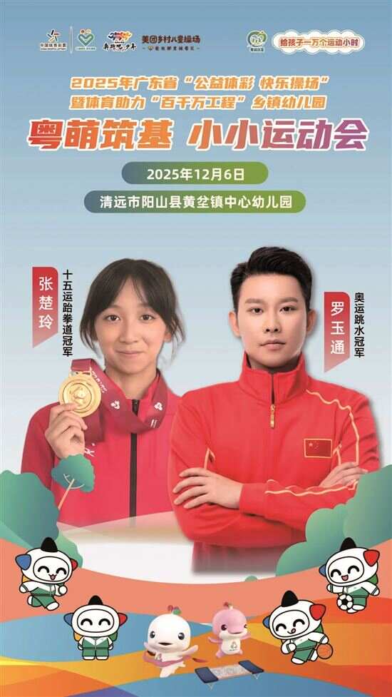 新快报讯 记者陆妍思 通讯员粤体彩报道 12月6日,2025年广东省 “公益体彩 快乐操场”暨体育助力“百千万工程”乡镇幼儿园“粤萌筑基 小小运动会”在清远市阳山县黄坌镇中心幼儿园正式启动。本次活动在茂名化州市杨梅镇中心幼儿园、汕头市潮南区成田镇中心幼儿园同步设立分会场,形成一场跨越粤东、粤西、粤北的爱心联动。这场活动的举行,标志着“粤萌筑基·乡镇幼儿体育阳光计划”全面展开,旨在将体育的阳光和快乐,播撒到更多乡镇孩子的心田。