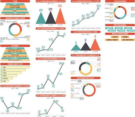 近期,单价数百元、被称为“手机壳爱马仕”的CASETiFY因全年销售额达到36亿元冲上热搜。一个小小的手机壳凭啥有这么强大的“吸金”能力?实际上,给手机买穿搭、置行头,早已成为年轻人的刚需消费和社交货币,从而诞生了一片千亿元级商业蓝海。数据显示,2025年全球手机配件市场将达1420亿美元,中国市场将达5200亿元。