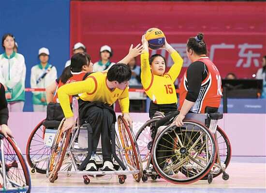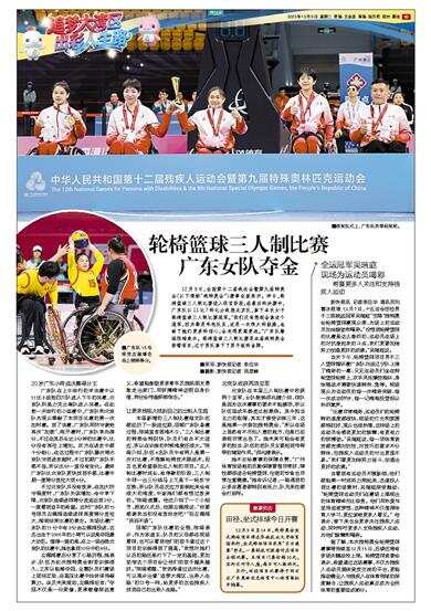 12月9日,全国第十二届残运会暨第九届特奥会(以下简称“残特奥会”)赛事全面展开。昨日,轮椅篮球三人制比赛进入收官阶段,在最后的决赛中,广东队以11比7的比分战胜北京队,拿下本次女子轮椅篮球三人制比赛冠军。“我们没有想到会拿这个冠军,因为都是年轻队员,这是一次很大的鼓励,也给了她们更多的信心,会走得更高更远。”广东队教练陈琦表示。轮椅篮球三人制比赛是本届残特奥会新增项目,辽宁男队拿下了男子组的金牌。