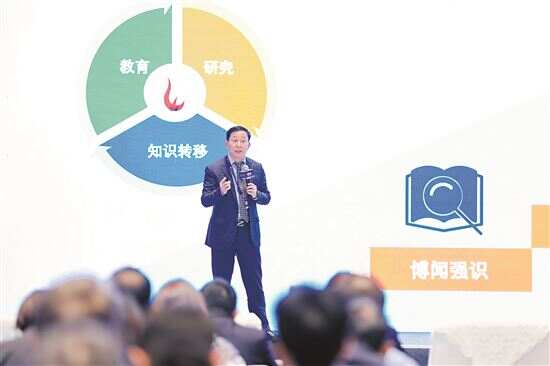 香港科技大学(广州)协理副校长(知识转移)熊辉分享了高校科技成果转化的“港科广模式”。他介绍,学校依托与香港科技大学“双校一体”的互补优势,通过“产、学、研、用、投”深度融合的创新理念,构建集尖端教育、前沿研究与高效知识转移于一体的生态系统,实现创新价值的最大化释放。