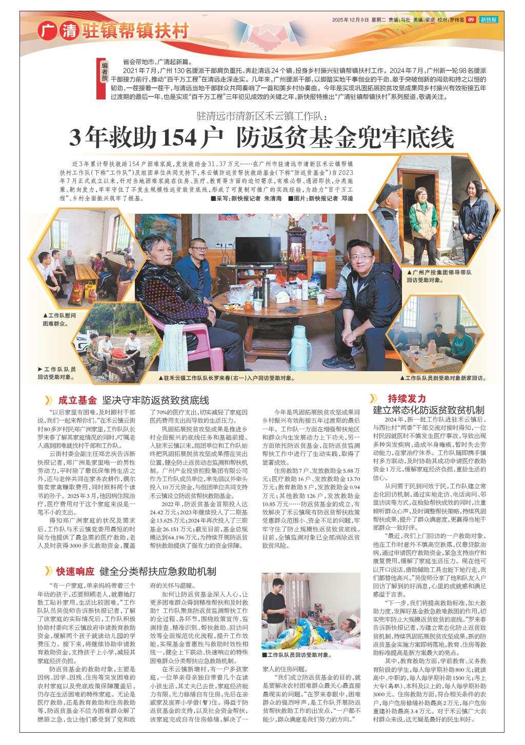 驻清远市清新区禾云镇工作队:3年救助154户 防返贫基金兜牢底线