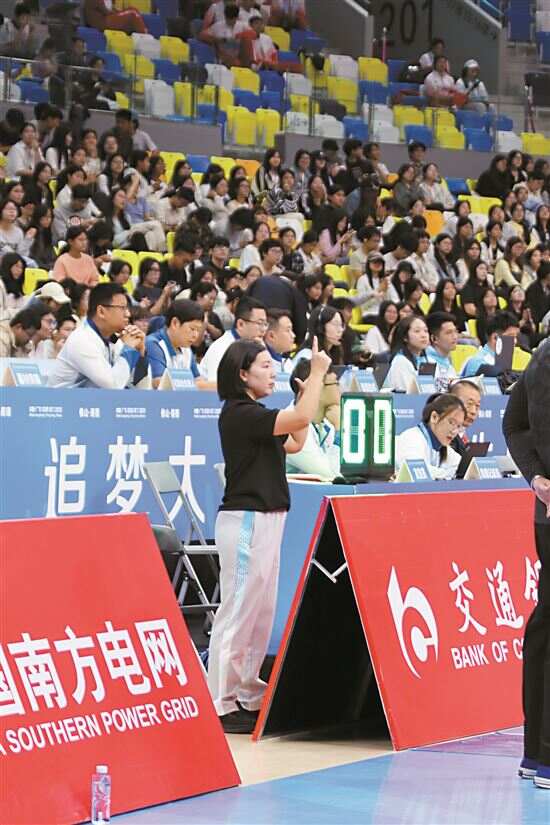 “我们在场边时,就是听到什么翻译什么,主要是把信息给两边的观众和所有的运动员,但更多是为了服务观众。”据在顺德德胜体育中心担任手语翻译的黄焕如介绍,她从2010年广州亚残运会起进入赛事手语翻译服务。手语与正常语言语序有一定差别,因此手语翻译们也是力求精准,通过手语翻译,链接赛场内外,帮助人们更享受赛事。从去年预赛开始,手语翻译员就开始了专门的培训,向运动员了解一些篮球专业术语的手语表达,向裁判学习各种手势的代表含义。