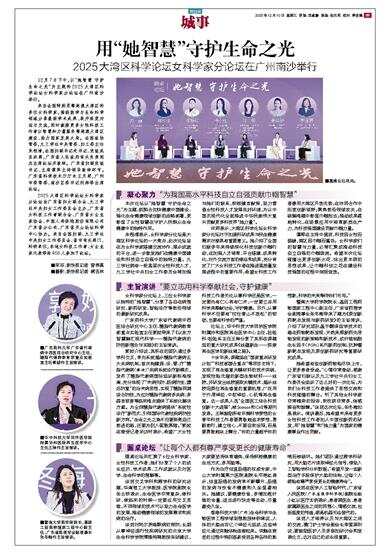 12月7日下午,以“她智慧 守护生命之光”为主题的2025大湾区科学论坛女科学家分论坛在广州南沙举行。