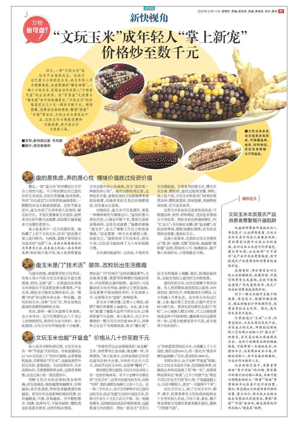 “文玩玉米”成年轻人“掌上新宠” 价格炒至数千元