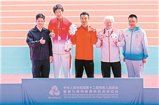 ■12月12日,苏炳添现身残特奥会田径赛场,为男子跳远T13级项目的获奖运动员颁奖。