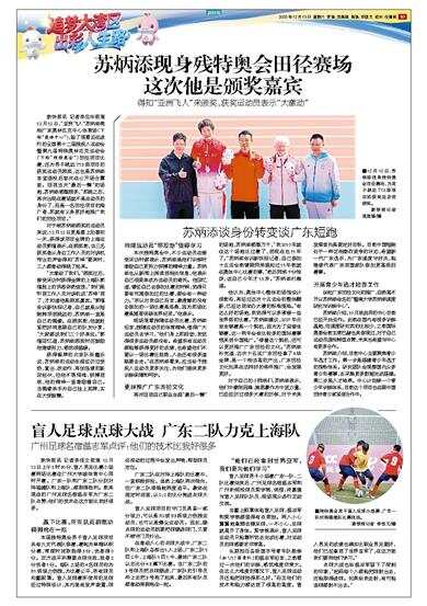 新快报讯 记者李应华报道 12月12日,“亚洲飞人”苏炳添亮相广东奥林匹克中心体育场(下称“奥体中心”),除了观看正在进行的全国第十二届残疾人运动会暨第九届特殊奥林匹克运动会(下称“残特奥会”)田径项目比赛,还为男子跳远T13级项目的获奖运动员颁奖,这也是苏炳添官宣退役后首次在公开场合露面。回到当天“最后一舞”的场地,苏炳添感慨颇多,“那晚之后,再次出现在赛场就不是运动员的身份了,而是一名田径项目的推广者,那就有义务更好地推广我们的田径项目。”