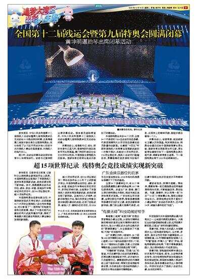 新快报讯 记者李佳文报道 记者昨日从残特奥会新闻发布会上获悉,本届残特奥会全面展示了我国残疾人竞技体育发展新成就,竞技成绩实现了新突破。其中,残奥聋奥运动员在田径、游泳、射击、举重、场地自行车等有纪录的项目中,创156项全国纪录、超15项世界纪录。