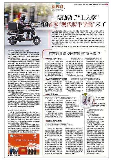 从送单跑腿到技能傍身、未来三年将覆盖在粤超10万骑手……近日,广东省教育厅与京东集团签订战略合作协议,全国首家“现代骑手学院”在广州职业技术大学(下称“广职大”)挂牌成立。据悉,新学院将依托广职大的职业教育资源与京东的业务场景,为在职骑手和快递员提供学历和技能“双提升”通道。