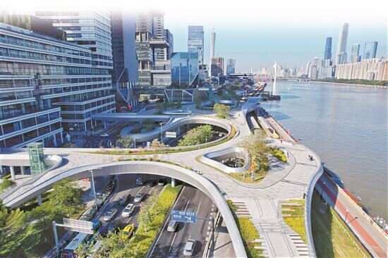 ■广州琶洲西区滨江立体人行交通工程日前正式对外开放,该项目是广州首个“空中花园”式立体交通综合体,东西长约500米。地面首层连接有轨电车、公园、交通站场、水巴码头等设施。二层平台设置休闲绿地、观景平台与公共服务设施等开放空间。