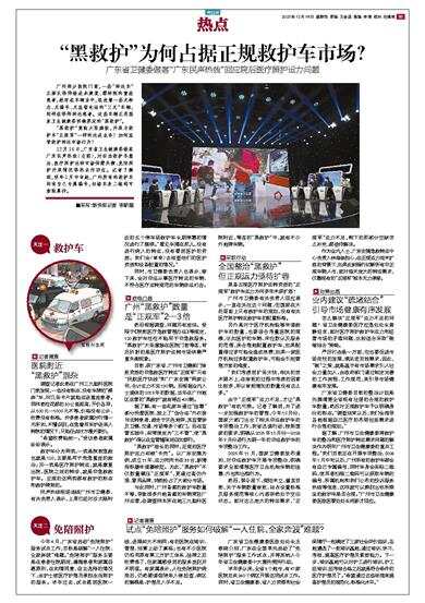 12月16日,广东省卫生健康委做客广东民声热线(右图),对非法救护车整治、医疗照护运转市场供需失衡、免陪照护开展情况等热点作回应。记者了解到,明年1月中旬起,广州所有的救护车将有自己专属编号,扫描车身二维码可查验真伪。