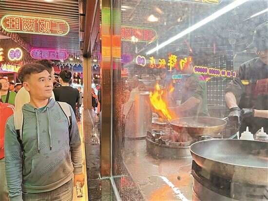 ■在宝悦坊连通南北两侧的公共走廊上,食肆商家把明档炒菜、明炉烧烤等原本隐匿于后厨的烹饪细节搬至台前,烟火气变得“可视化”。