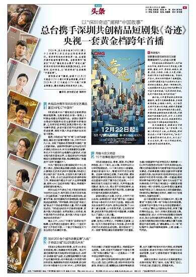 2026年,亚太经合组织(APEC)第三十三次领导人非正式会议将在深圳举行。深圳即将迎来对标世界一流、全面提升城市能级的重要时期。由影视制作“国家队”中央广播电视总台携手“奇迹之城”深圳共同创作的精品短剧集《奇迹》,合时而作、应时而生,以“深圳奇迹”生动阐释“中国故事”。