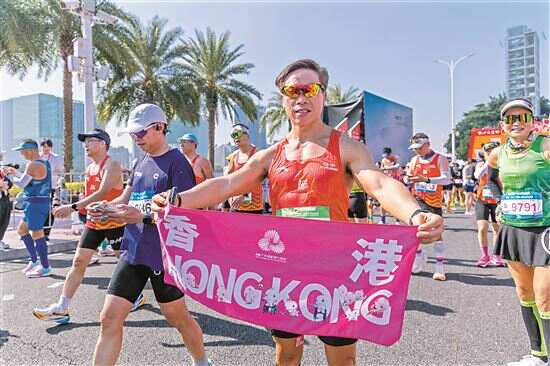 在这样的天气下跑马拉松,跑友们坦言真的很热,但也都表示跑得很开心。广马“官兔”梦寅说:“比冬至天气更热的,是广州马拉松的热情。”