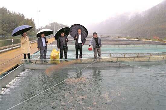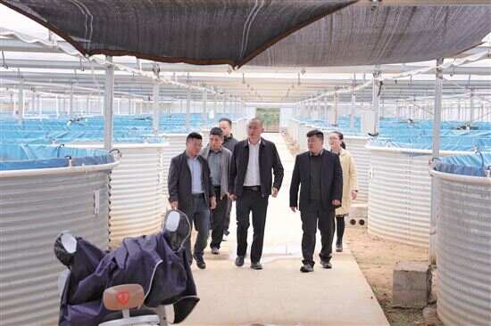 ■粤黔协作紫云小组到格凸河镇二关村陆基养殖基地了解产业发展情况。