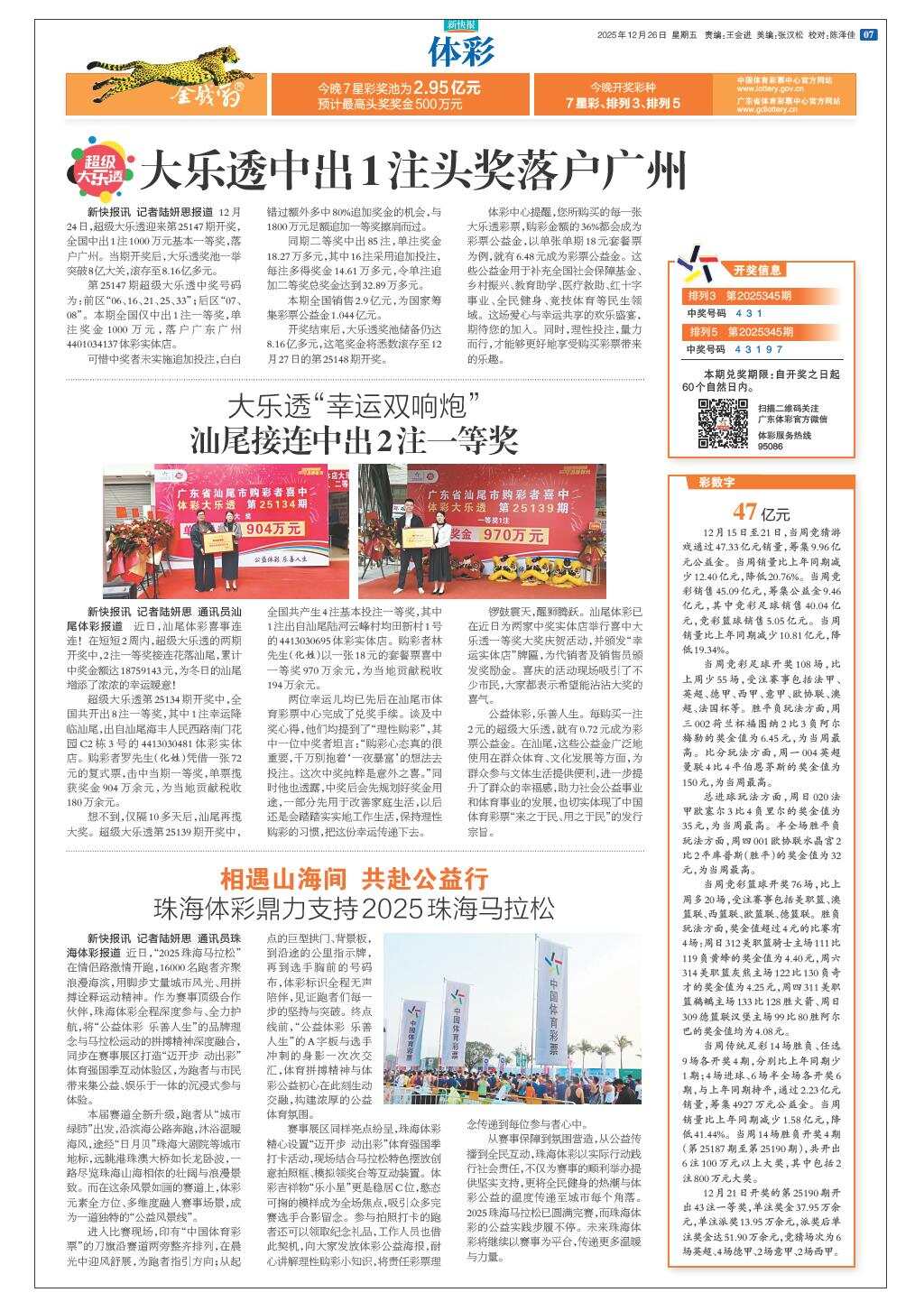 大乐透“幸运双响炮” 汕尾接连中出2注一等奖