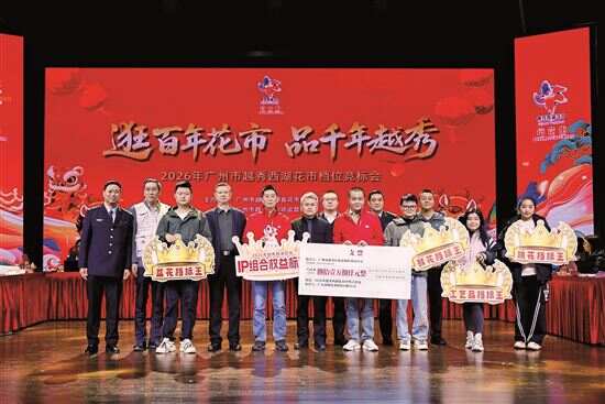 新快报讯 记者梁燕芬报道 12月26日上午,2026年广州越秀西湖花市档位竞标会在广州市工人文化宫举行,近400名市民到场参加竞标。经过激烈竞价,118个档位全部成功投出,其中,花市IP组合权益“总标王”以818000元成交,较往年上浮1万元。