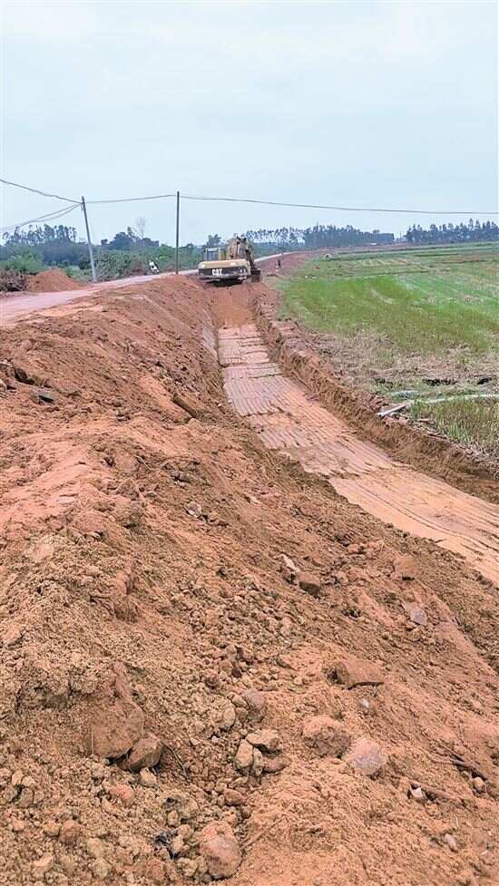 ▲建设中的杨家镇村道。