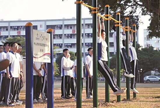 如今,冬日暖阳下的中山市小榄中学操场活力满满,学生们在崭新的连体单杠上奋力完成引体向上,计数声此起彼伏,成为校园里一道动人的风景。